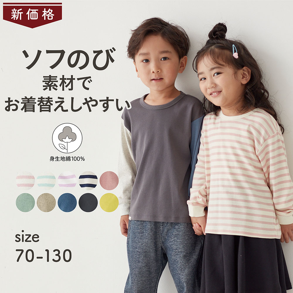 >> 【ジータ/GITA】お着替えしやすいソフのびフライス長袖Tシャツ 【子供服 無地】
